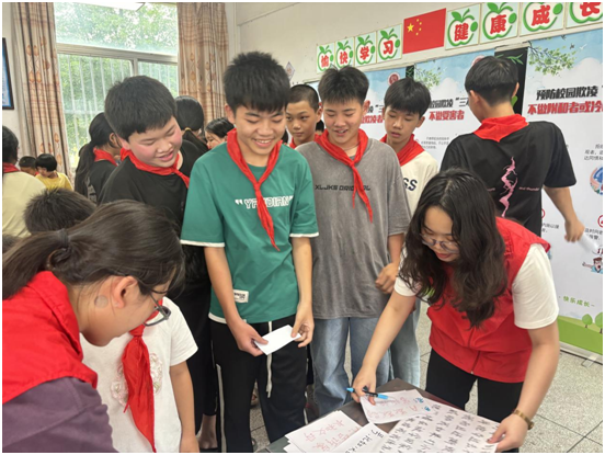 集团精心组织同学们有序参与活动,同学们在员工党员们耐心陪同、精心辅导下,全部完成了6个游戏通关并拿到小礼品,活动现场气氛愉快而热烈。有老师反馈到,我们的教育一直以老师说同学听的方式进行,而这次活动形式很新颖,非常受同学们欢迎,相信一定会加深同学们对校园欺凌的认识和理解。