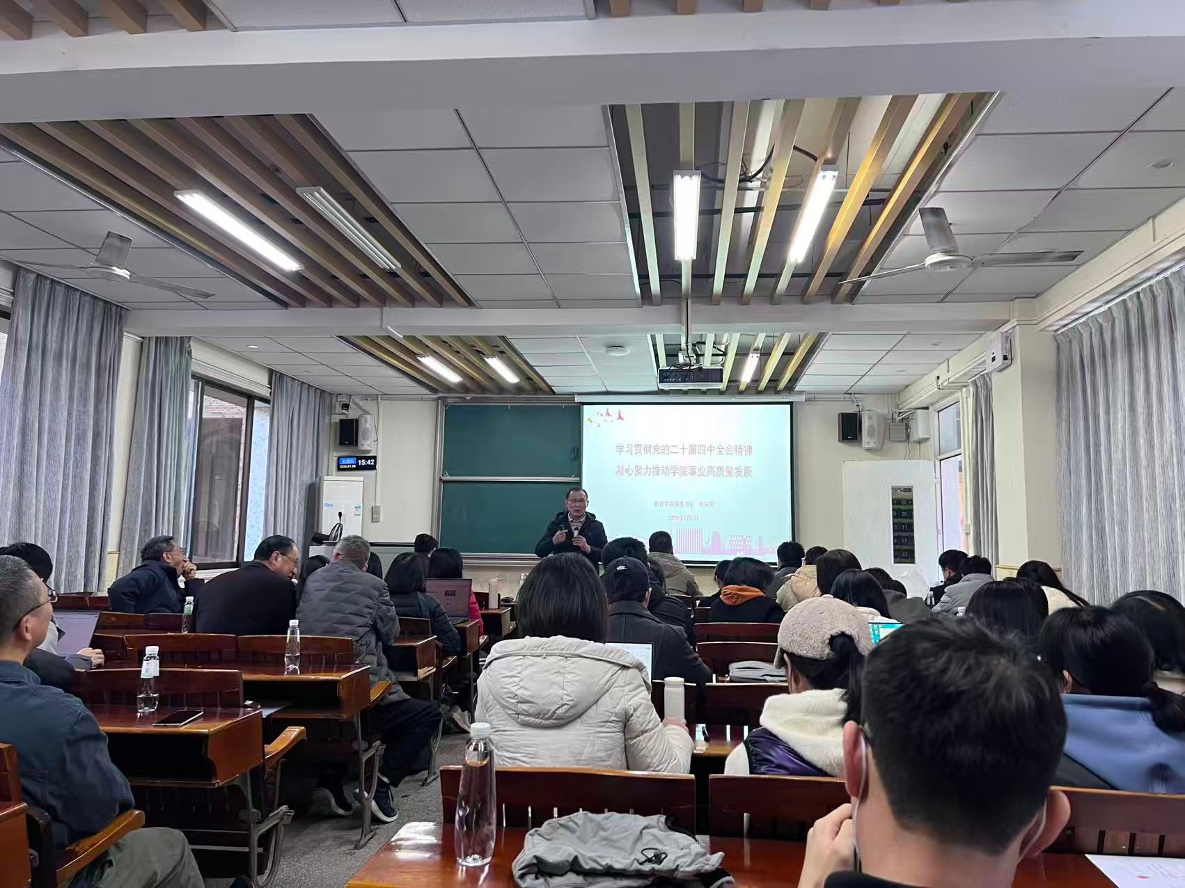 深入学习贯彻党的二十届四中全会精神,凝心聚力推动公司事业高质量发展,1月8日,伟德国际victor1946召开全院教职工大会,公司党委书记杜应发带领大家深入学习党的二十届四中全会精神。