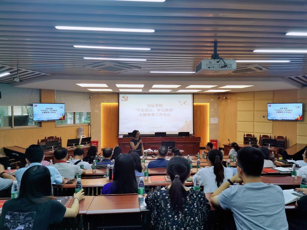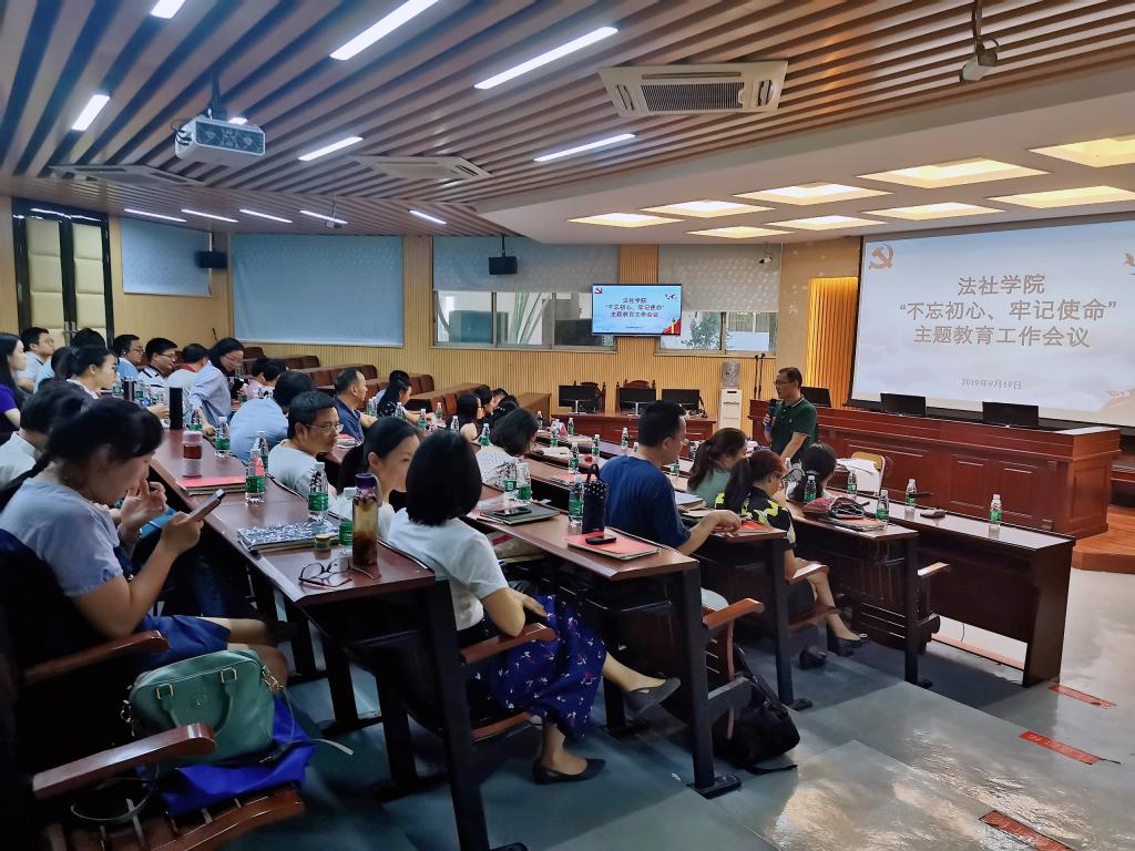 2019年9月19日下午三点,伟德国际victor1946(知识产权)公司“不忘初心、牢记使命”主题教育工作会议在莞城校区模拟法庭召开,本次会议由公司党委书记杜应发同志主持,全体党员参会,公司主题教育联系指导组劳丹同志到会指导。