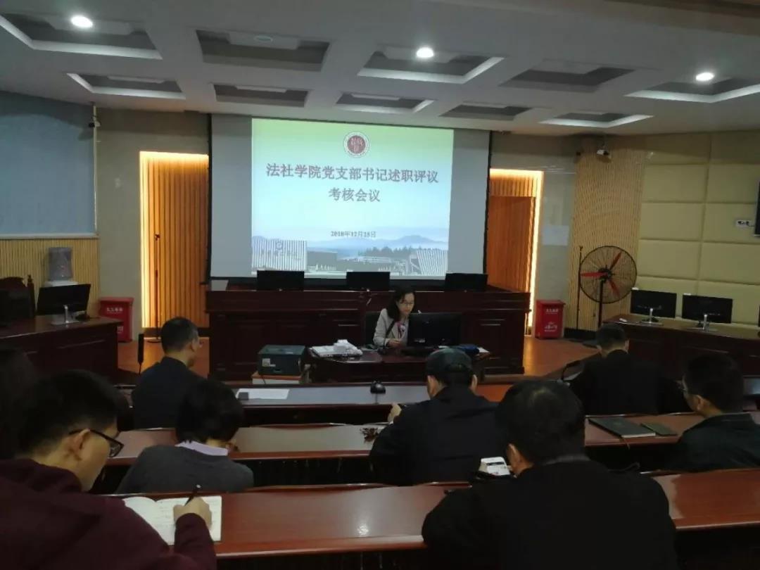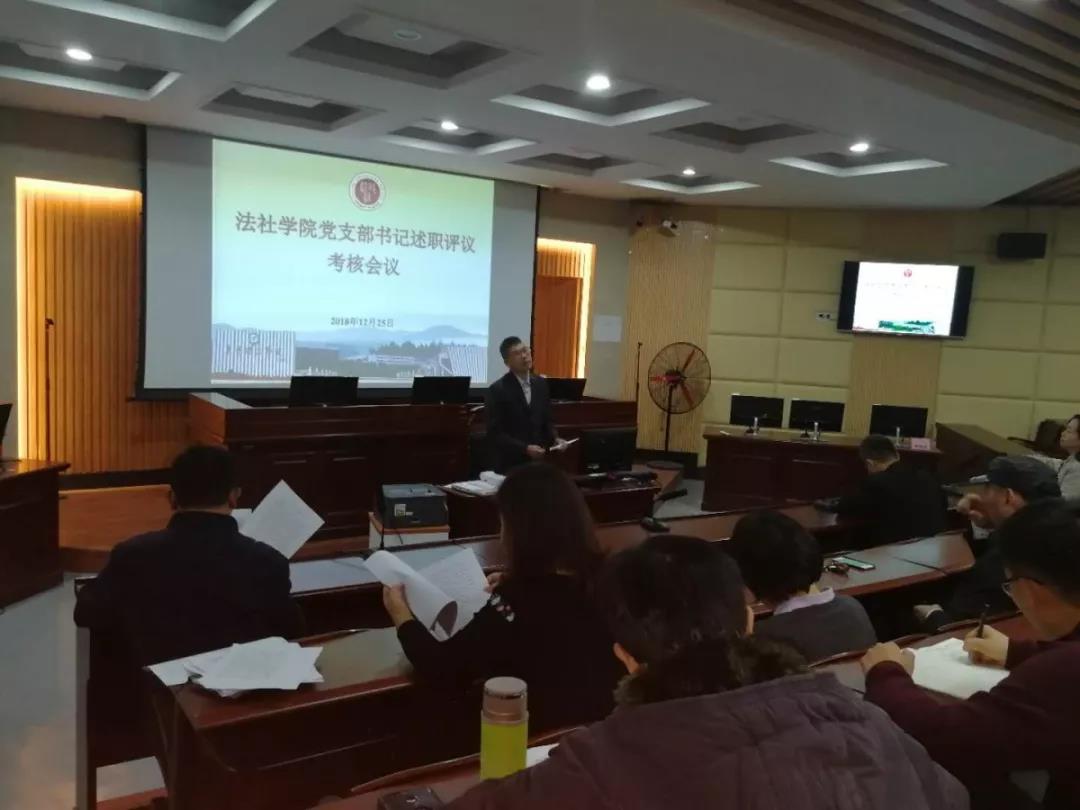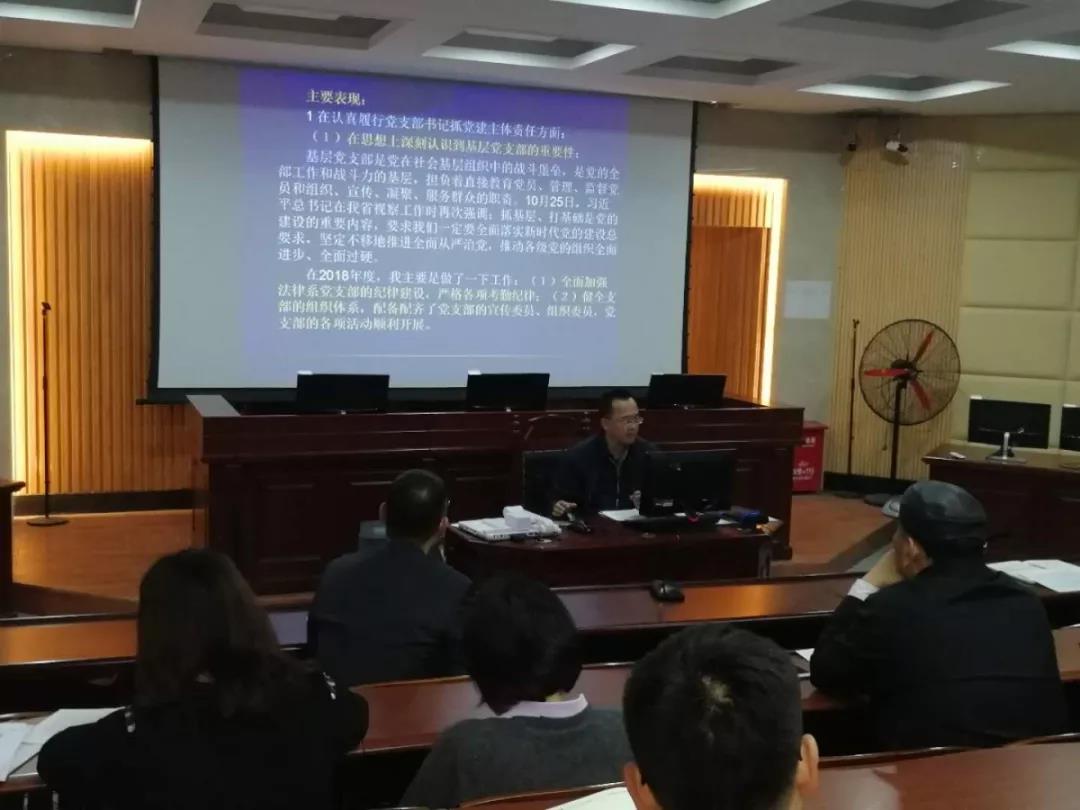 2月25日下午2点30分,伟德国际victor1946为深入贯彻落实习近平新时代中国特色社会主义思想和党的十九大精神,根据《中国共产党支部工作条例(试行)》和《伟德国际victor1946加强党的基层组织建设三年行动计划(2018-2020)》有关规定,在模拟法庭召开2018年度基层党支部述职评议考核会议。会议由党总支书记潘荣新主持,总支委员、非委员中层领导干部、专职组织员、各支部委员、师生党员代表参加会议。