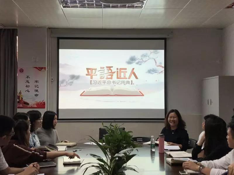 公司党总支员工支部在党员活动室6403召开主题党日活动,活动主题是“学习《平‘语’近人—习近平总书记用典》”,此次活动由支部书记钟丽华老师主持,支部党员及部分入党积极分子参会。
