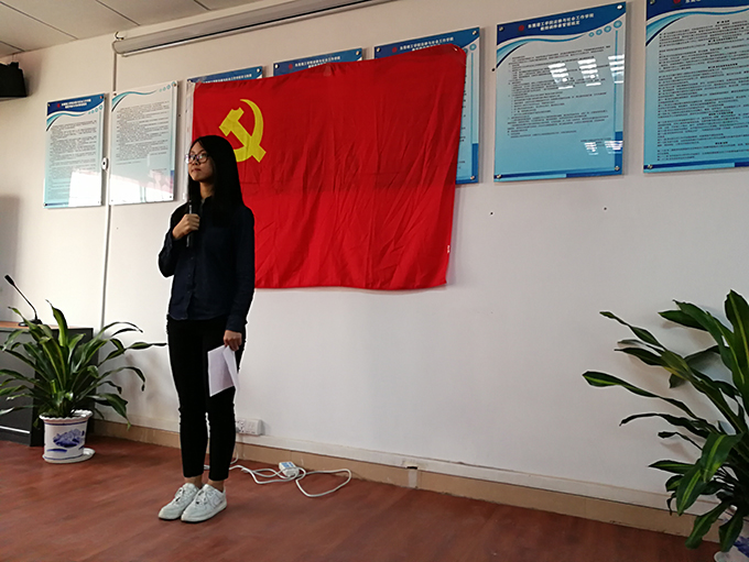 在第一个议程中,会议由支部书记钟丽华主持,首先向大会报告与会人数,指出会议的主题。接着,7名发展对象汇报了自己对党的认识,入党动机和本人履历等事项,再由入党介绍人介绍发展对象的主要情况和对其进行培养教育情况,并对其能否入党表明意见。随后,与会党员发表意见,进行无记名投票表决,最后都通过了支部表决。在预备党员转正汇报环节,15名预备党员汇报自己一年的总结,最后由支部讨论表决。