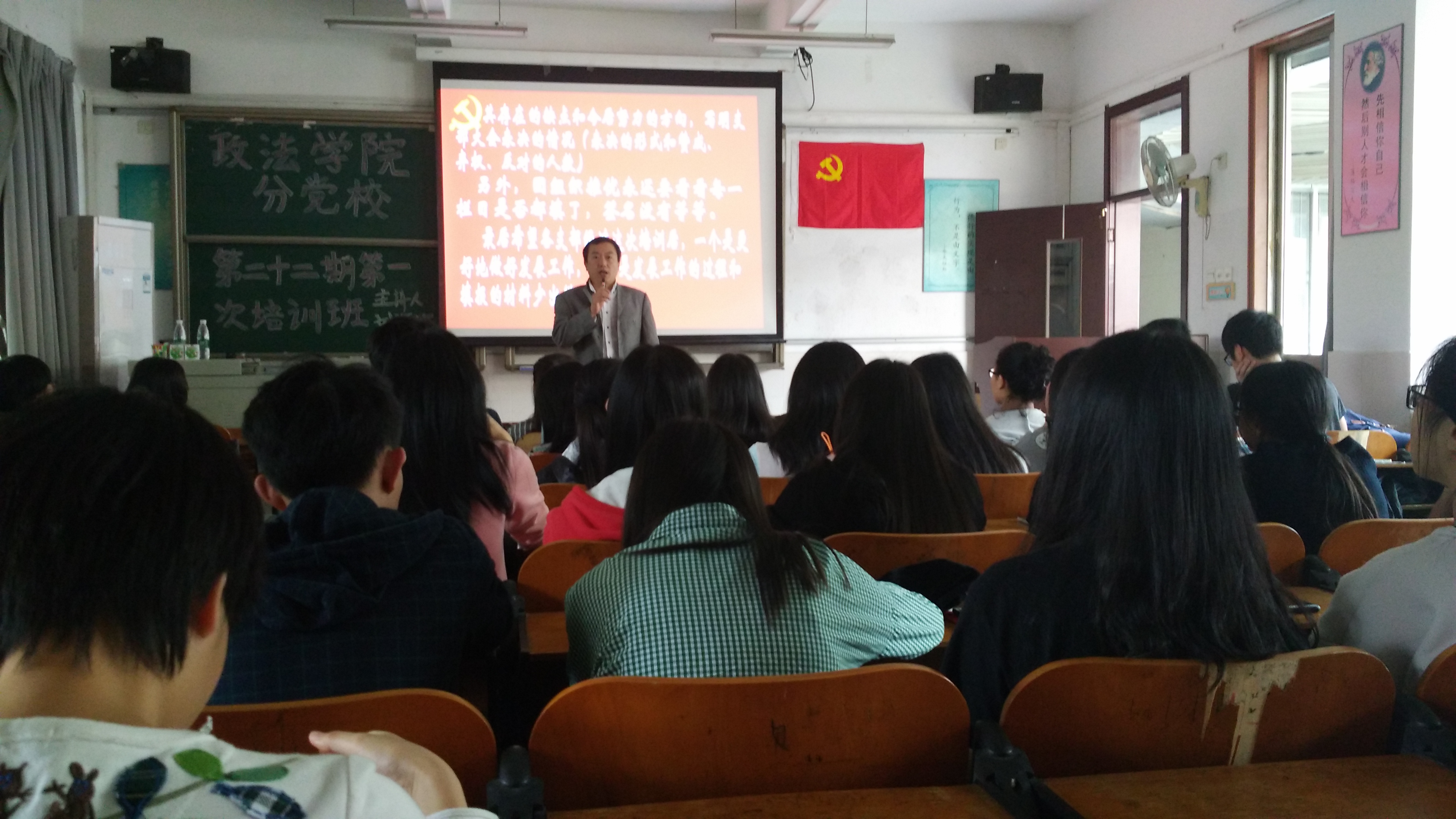 3月31日下午2:30,政法公司分党校莞城校区第二十二期入党积极分子第一次培训课于课室1308举行。本次培训课邀请到刘海波老师授课。应到积极分子60人,实到54人。