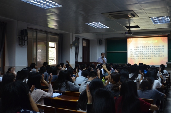 10月29日下午3:00,政法公司分党校莞城校区第二十一期入党积极分子第三次培训课于课室3407举行。本次培训课邀请到思政部李洪君教授授课。应到入党积极分子84人,实到76人,另有53名班委参加。