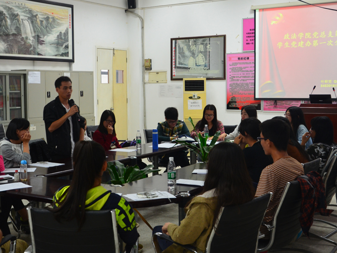下午3点,党建办在经管楼211举行政法公司第三届员工党建办第一次全体大会。大会分为播放视频、人员自我介绍、新干事分享活动感想、干部发表讲话与颁奖共5环节进行。会上,新旧人员相互熟悉、相互分享,气氛欢乐融洽。下午4:15,全体大会圆满结束。接着,各部长带着新干事进行部门培训。