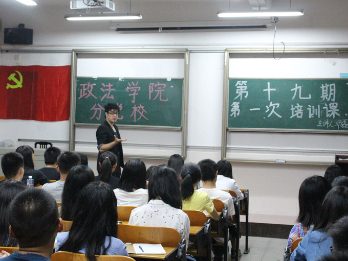 11月24日晚上七点三十分,政法公司分党校第十九期第一次入党积极分子培训课于莞城校区课室1308举行。本次培训课由政法公司辅导员邓磊老师主讲,应到人数为62人,实到人数为56人。