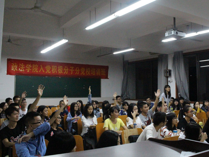 授课开始后,邓磊老师以轻松诙谐的授课风格向在场积极分子们介绍本次培训课的主要内容,课堂气氛极为融洽。邓磊老师用提问方式让积极分子们认识发展党员的流程和要求,也使同学们了解党的历史进程。在场积极分子们对中国共产党和共产党员身份积极发表了个人看法,各种回答富有新意又切合实际。邓磊老师紧跟着介绍了成为正式党员的流程以及相关注意事项,并讲授了党的历史进程,使积极分子们更好地认识我们的中国共产党。讲课过程中,积极分子们被邓磊老师轻松幽默又不失严肃的授课方式吸引,大家都聚精会神地听讲并做好相关的学习笔记。