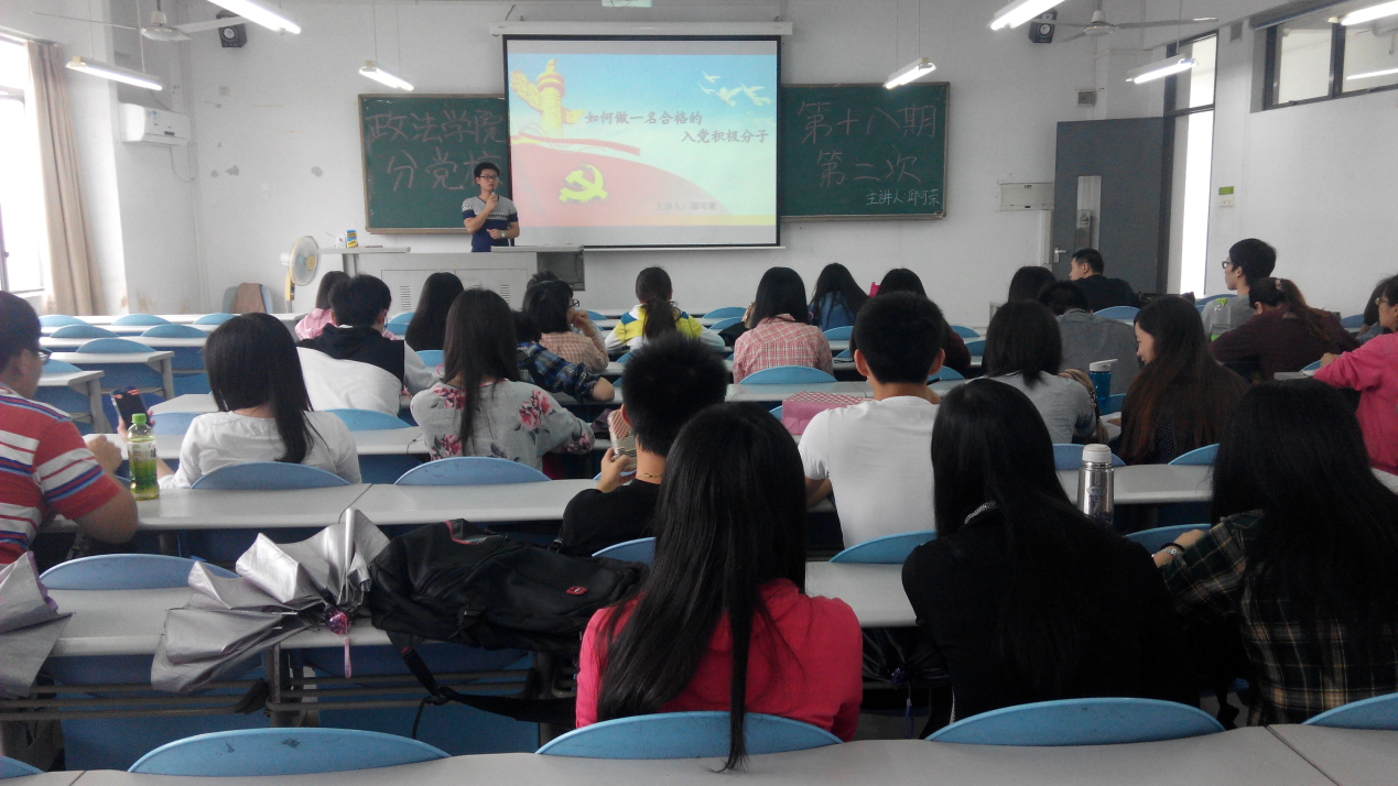 为提高公司入党积极分子的党性修养和思想觉悟,2014年5月8日下午3:00,政法公司分党校第十八期入党积极分子第二次培训课在6D401顺利进行,辅导员邱可荣担任授课老师。