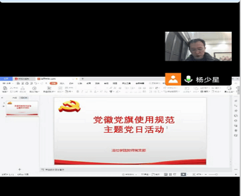 2022年12月16日(星期五)19:30-20:30,伟德国际victor1946教师党支部开展党徽党旗使用规范主题党日活动,组织支部党员教师深入学习《中国共产党党徽党旗条例》(以下简称《条例》),教育引导支部党员教师充分认识《条例》的重要意义,进一步规范党徽、党旗在日常工作使用中的政治性、严肃性。会议由党支部书记杨少星老师主持。