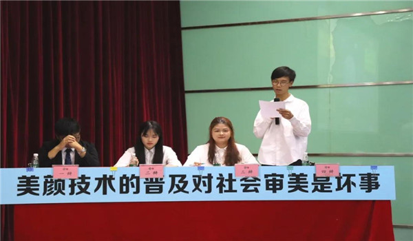 首先打响的是季军赛,正方通过“美颜技术的普及能否顺应时代审美的发展,通过增加大众对美的内容多样性的认识和丰富大众审美的角度,从而形成社会多元审美格局”这一标准展开论证,指出人们通过普及美颜技术能包容接纳更多的美,让社会审美为大众服务,从而促进社会多元审美格局的形成。而反方提出“美颜技术的普及对社会审美带来不好影响”的观点,以阙莉敏硕士的调查为依据,说明“美颜技术的普及容易造成容貌焦虑和审美单一”。双方思路清晰,引用大量数据,据理力争,使现场气氛迅速升温,向观众呈现一场言语思辨的盛宴。
