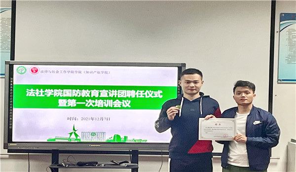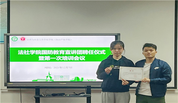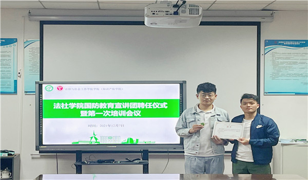 在聘任仪式上,邹欢老师讲解了国防教育和参军入伍动员宣讲的主要工作内容,对宣讲团成员的工作提出了三点要求,一是提高政治认识,把国防教育宣讲作为普及全民国防知识的契机,让更多的同学了解国防知识;二是“吃透”相关政策,把老员工参军入伍等政策理解透彻,在宣讲过程中做到政策“了然于胸”;三是创新宣讲形式,用员工喜闻乐见的形式做好国防教育和老员工参军入伍动员宣讲,激发同学们参军报国的热情。