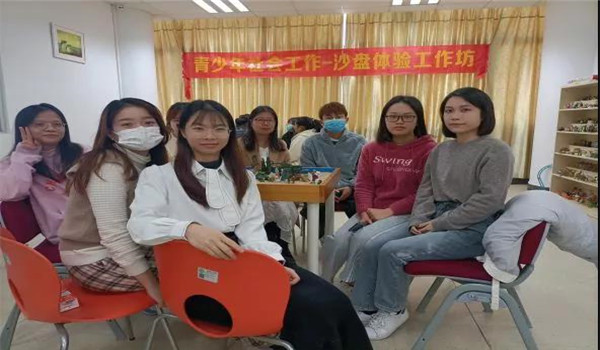 为丰富《青少年社会工作》课程实践内容,公司社会工作系教授张燕婷、实验员张子庄特邀行业导师——国家二级心理咨询师李活妙、高级沙盘游戏咨询师尹秀娇、见习督导梁燕珊、中级社工师李玉燕及中级社工师龚丹为2019级社会工作1班与2020级社会工作专插本1、2班开展为期2节的沙盘理论课和为期1节的沙盘体验课,其中,梁燕珊和李玉燕为校外实践基地大众社会工作服务中心的社工。