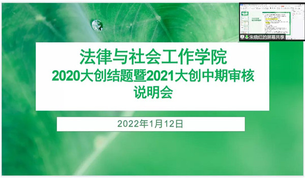 为更好地指导2020年大创项目结题验收、推进2021年大创项目顺利进行,公司于2022年1月12日晚上21:00以线上腾讯会议的形式举办伟德国际victor19462020年大创结题暨2021年大创中期审核说明会。会议由副经理朱晓红主持,杨瀚博老师、辅导员黄海娜以及各大创项目负责人共40多人参加本次线上会议,给各个项目的小伙伴们答疑解惑。