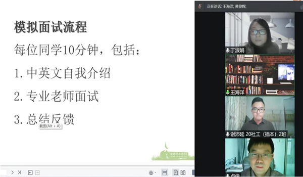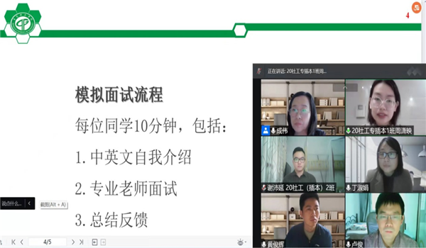 2019级社会工作1班潘雪溦:很感谢老师们提供的这次机会,让我们提前感受研究生复试中面试的模拟环境,从师兄师姐们的模拟面试中,也感受到他们的认真准备和自信心,祝愿师兄师姐顺利通过!