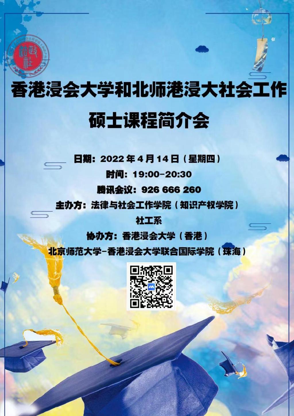 2022年4月14日晚19:00开始,伟德国际victor1946社会工作系在线上举办社工梦·启航|香港浸会大学和北师港浸大社会工作硕士课程线上宣讲会。本次讲座特邀北京师范大学-香港浸会大学联合国际公司(简称北师港浸大)社会工作与社会行政专业系主任陈錦棠、黄匡忠教授、邓美结博士、谭雅倩博士、王姝萍老师和谭凌老师为香港浸会大学和北师港浸大社会工作硕士课程做讲解与宣传。社会工作系主任成伟主持本次讲座,公司经理郑玉敏、社工系副教授卢俊、丁淑娟老师、社工实验员张子庄,同时还有来自公司各专业的员工共计近200人参与本次线上活动。