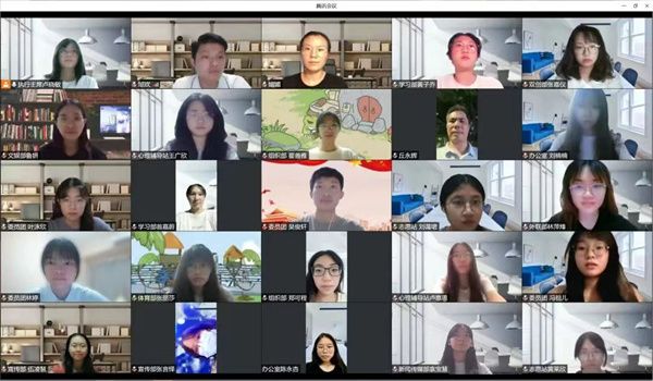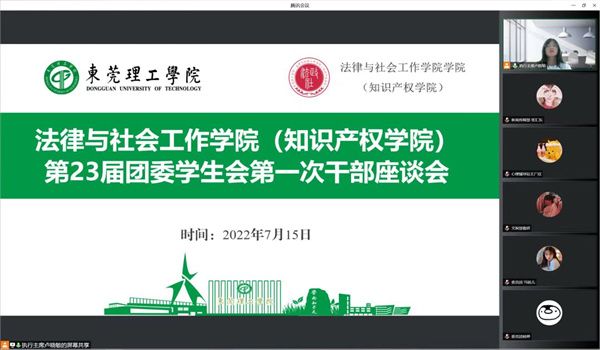 为了增进新任委员团和新任部长团之间的了解,加强员工干部与老师的沟通与交流,公司团委员工会于7月15日晚7:30在腾讯会议软件上召开了第二十三届团委、员工会第一次干部座谈会。本次会议由执行主席卢晓敏主持,党委副书记丘永辉、学工办主任钟丽华、辅导员邹欢和谢媚媚,以及团委员工会全体员工干部出席了本次会议。
