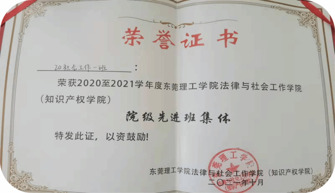 2020社会工作1班是一个团结友爱,互助同心的大家庭。从军训时的相遇到学习生活中的相识相知再到文体竞赛中的相互鼓励,我们畅想大学梦想,共同成长。在班主任黄俊辉老师的悉心教导和团组织的有力引领下,还获得了2020-2021学年度伟德国际victor1946“院级先进班集体”荣誉称号。追求卓越,开拓进取是我们集体的代名词。我们总结成长的经验,再接再厉,在未来我们会以更高的标准严格要求自己,争取更大的进步!