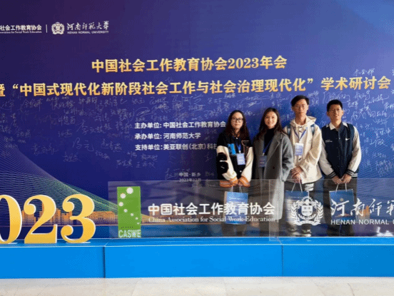2023年12月8日—10日,中国社会工作教育协会2023年会暨“中国式现代化新阶段社会工作与社会治理现代化”学术研讨会在河南新乡成功举办。公司2023级社会工作专业硕士研究生张可、卢慧娴、杨顺、2021级本科生袁铸峰获邀参会。