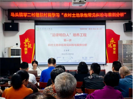 4月29日,伟德国际victor1946法律系副主任吉海荣老师赴新丰县马头镇开展“法律明白人”培训讲座活动。吉海荣老师围绕农村土地承包问题,结合《中华人民共和国农村土地承包法》《中华人民共和国土地管理法》《农村土地承包合同管理办法》等法律法规,针对农村土地承包常发纠纷类型,开展以案释法,让在场的“法律明白人”从案件的解析和处理中学到法律知识,了解土地承包纠纷解决方法与途径。讲座后现场村镇干部和村民就自身所遇到的土地承包问题纷纷提问,吉海荣老师和校法律顾问龙凤兰老师为大家答疑解惑。