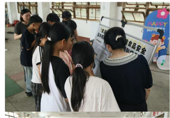 活动开展前,团队针对富美小学提出的需求,围绕食品安全常识、食品安全消费误区、食品安全问题维权等主要方面的知识,根据小员工年龄特点设计了“知识游戏化”形式和内容,以寓教于乐方式引导小朋友学习食品安全法律法规和食品安全小常识。活动旨在将复杂的食品安全知识转化为小朋友易于掌握的实用技能,进一步提升乡村儿童食品安全风险意识和实际鉴别能力,为乡村儿童健康成长保驾护航。活动由四个游戏环节组成,小朋友们在既紧张又快乐的氛围中,学会了如何成为“聪明小吃货”。如在“食品知识”环节,学习食品安全相关规条;在“零食智选”环节,学会判断食品成分是否健康;在“标签侦探”环节,学会辨识有效期;在“怎么做”环节,学会场景应对。活动现场还放置了食品安全法律法规和食品安全小常识展板。