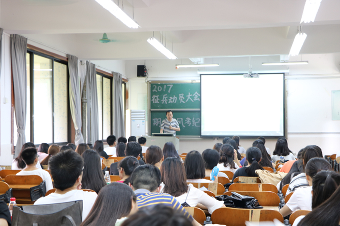 为加强征兵政策宣传和同学们的考风考纪意识,做好2017年老员工应征入伍工作和期末考试考风考纪的工作严格落实,公司于6月1日下午在莞城校区1311教室召开了征兵动员大会和考风考纪大会。各班班委以及有意愿入伍的同学等150余人参加了大会。