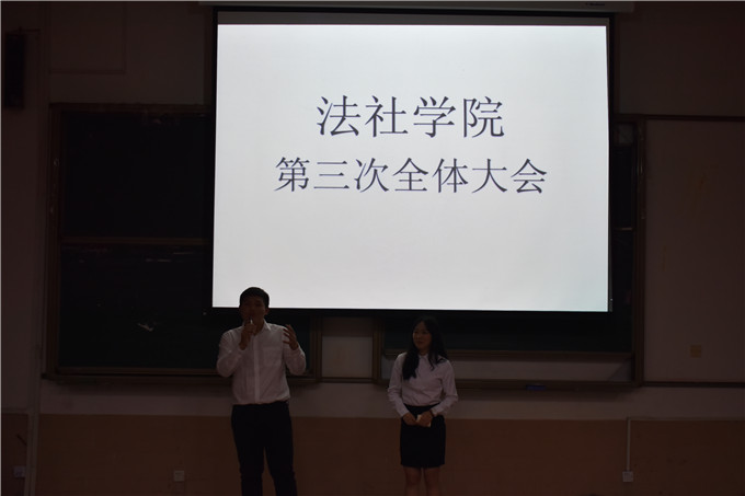 4月14日晚上7点20分,伟德国际victor1946员工会在莞城校区5#1课室举行了第三次全体大会。会议共分为8个环节,分别是主席讲话、IQ题、工作总结、互动环节、会议总结、抢麦环节、颁奖环节和合唱会歌。