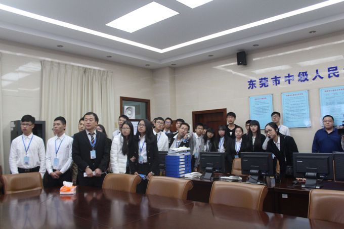 通过庭审,同学们对刑事诉讼法以及相关的刑法知识有了一次深刻的实践认知。此后,同学们在法官带领下参观了法院的审判区、办公区、执行指挥中心、安全指挥中心等,并在法官的介绍下让同学们对东莞中院有了初步的了解。最后,同学们在刘海波老师的带领下在大法庭进行了庄严神圣的宪法宣誓活动。