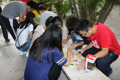 文明、和谐的社会需要相互协作,为了增进同学们之间的感情,增强班级凝聚力,同时学会相互扶持共同合作,促进班级和谐。2015年11月10日下午3点,14行政管理2团支部在2号楼一楼举行“活力在基层,成才在莞工”主题团日活动之“一路相随”团队活动。