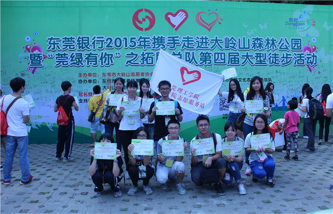 2015年10月25日上午九点,由东莞爱心志愿者协会和东莞市大岭山志愿者协会联合举办的2015年携手走进大岭山森林公园暨“莞绿有你”之拓展总队第四届大型徒步活动正式开始。政法公司志愿服务站的干事们参与了本次徒步活动。