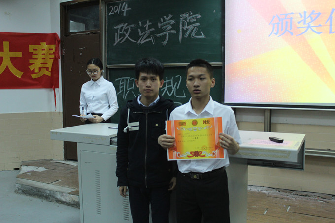 4月9日晚上7点30分,政法公司在莞城校区6#1课室举行了2014级新生职业规划大赛。出席本次大赛的评委有郭桦楷讲师、黄莹讲师、张达娜讲师、胡小彩讲师,嘉宾为政法员工会副主席吴丹丹。