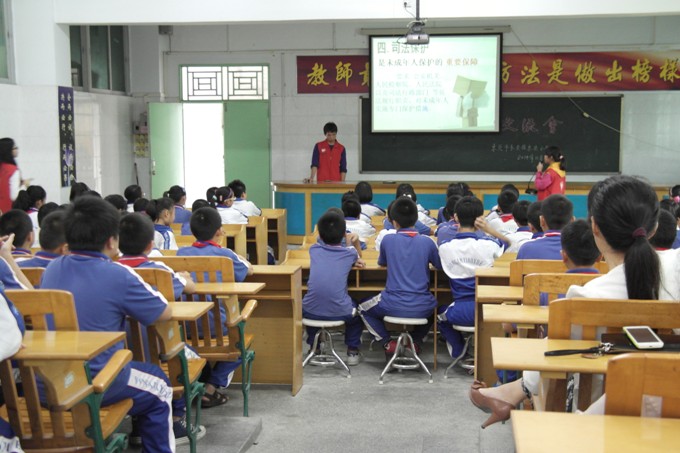 切实关切到不同年龄员工发展阶段,法宣队对不同年级员工的法律宣讲都有着不同的重点,切实宣传与他们息息相关的法律知识。在东安小学,考虑到他们可能遇到的安全隐患及自身保护力不足的情况,就着重向他们介绍未成年人保护法的四个保护:公司保护、家庭保护、社会保护和司法保护来保护自己,教会他们在遇到他人侵害自己合法权益时应作出怎样的合法反应;而在东安中学,宣讲的内容主要是现今未成年人犯罪的状况及预防未成年人犯罪法,教育员工们要端正心态,不接触违法犯罪的情况,保障自身权利及尽到应有的义务,做个合格的中员工。