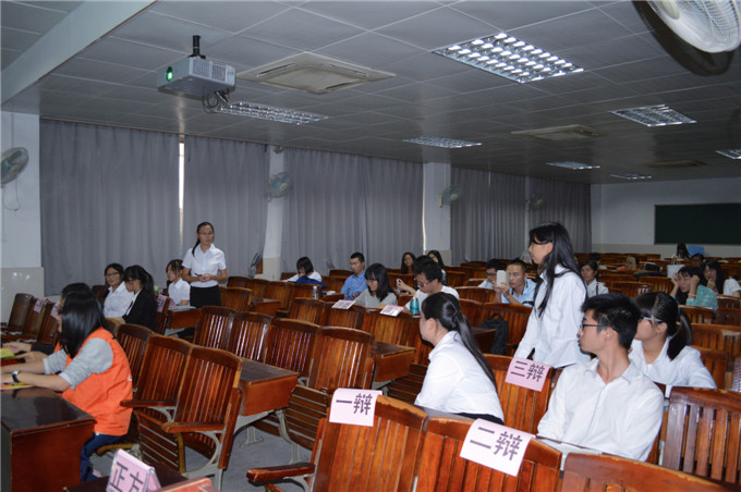 比赛分为四阶段,本次进行的是第一阶段的初赛,第一阶段由政法公司2014级莞城10个班的同学共同参与,两两辩论,决出进入下一轮的队伍。比赛评委由政法公司辩论队队员担任。