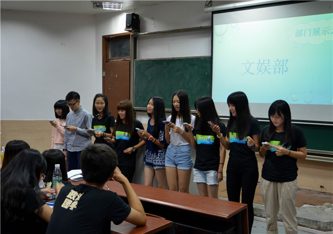 在一段第14届的员工会的回顾视频中会议开始,这个视频回忆了过去一年来员工会工作及生活的点点滴滴,在回忆中,各部门的委员们心中都充满了暖暖的情绪。视频的播放之后,员工会主席叶创新上台致辞。员工会主席叶创新表示,新一届的员工会的干事们要珍惜在员工会的岁月,只要认真对待,终会有所收获,谈到刚刚播放的员工会回顾视频,叶主席希望在明年的员工会的全体大会上也能有在座的新干事们更加精彩的一面。主席致辞后是精彩的部门展示,秘书处的“非诚勿扰”节目,学习部的搞怪舞蹈,公关部、新闻信息部诙谐幽默的小品,自律部、宣传部、文娱部、体育部动听的歌唱都不乏亮点,各个精彩的节目把全体大会的气氛推向了高潮。部门展示之后,各个部门的部长也陆续上台发言,对自己的感受与部门工作坐了总结与展望。按照传统,自律部部长杨国桃与新闻信息部副部长张帆分别进行了相关培训。