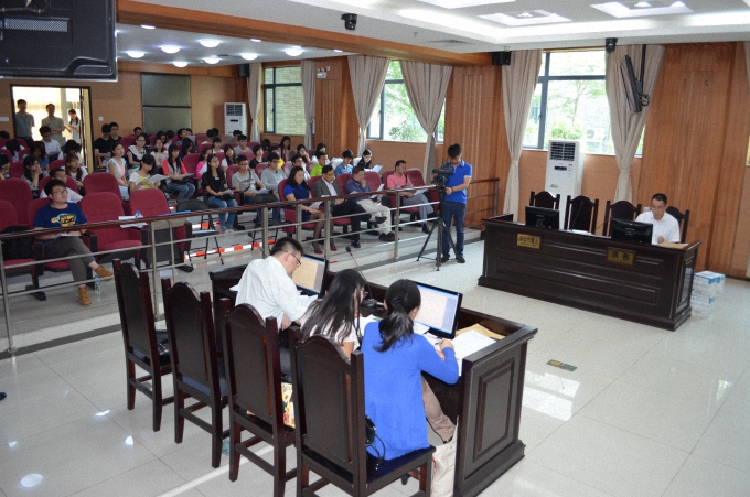 4月18日,政法公司师生来到松山湖人民法庭第一审判庭参加了“东莞市第一人民法院民四庭4.26世界知识产权日活动系列之公开示范庭”的庭审活动。开庭之前,到庭旁听学习的同学们认真阅读了本次开庭审理的案件材料。庭审于9点30分正式开庭,案件主要是由注册商标使用权所产生的民事纠纷。庭审上双方当事人的诉讼代理人向法庭呈递了相关证据后阐明各自观点,进行了精彩的答辩。到庭旁听的同学们都认真观看,仔细记录。