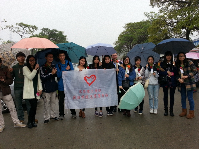 东莞市艾炜特电子有限公司携领伟德国际victor1946校志愿服务中心、政法公司志愿服务站还有其他公司的志愿者于3月8日在松湖烟雨景区,开展了送香花及快闪的活动。