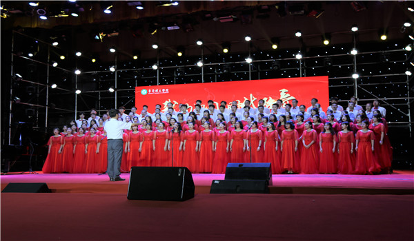 作为莞城校区的四支参赛队伍之一,公司早在4月底就通过公司的分工会和团干部组织师生报名参加师生合唱团。公司的合唱曲目选择了曲风优美的民歌《半个月亮爬上来》,并由公司党总支副书记丘永辉担任合唱指挥。在历经一个半月的练习和排练中,公司师生坚持每周至少两次的合唱练习。
