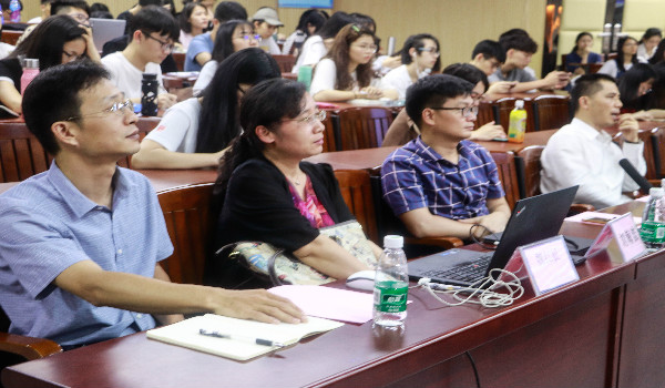 随后,陆峰莲学姐分享参加大创项目比赛的心路历程。她就调研中遇到的问题和困难告诉我们,应一步一步慢慢学习、积累、成长,还为我们播放了比赛相关视频。她的分享给同学们提供了参考,让同学们受益匪浅。