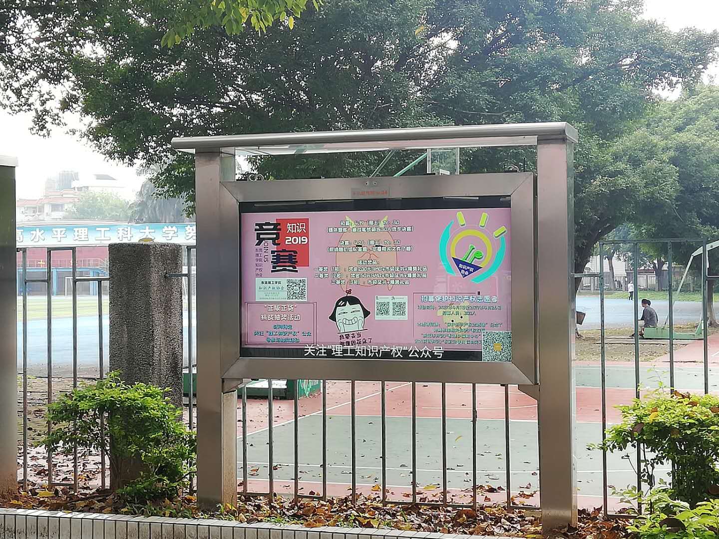此次活动,理工公司一改往年“摆摊设点”的传统宣传模式,着力打造传统宣传和新媒体“小晒同学”电子屏幕的“轮番上阵”的轰炸式效果,印有“保护知识产权、知识产权竞赛、正版正货漫画设计大赛”等宣传内容的16块电子屏幕在松山湖校区与莞城校区,反复进行霸屏播放。“知识产权的蓝天白云”覆盖了整个大公司园。