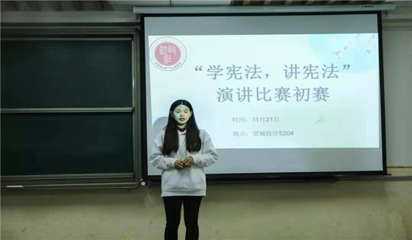 活动伊始,各个选手们在进行了简短的自我介绍后将初赛投稿的文章进行脱稿演讲,选手们的演讲围绕“宪法与国家”、“宪法与社会”、“宪法与个人”等主题展开。选手们演讲内容丰富,或铿锵激昂、声情并茂,或抑扬顿挫、娓娓道来,这展现了莞工学子良好的精神风貌,赢得了在场观众和评委的阵阵掌声。