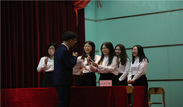 抢答环节后结束后,观众互动环节随着轻松的音乐开始了,击鼓传花的方式让观众兴趣盎然,大家都积极踊跃地参与互动。观众互动结束,到了最后的“一站到底”环节。队员上台答题,参赛者集中精力认真审题,全场观众屏息凝神为他们营造出安静的答题氛围。经过激烈的角逐和评委的严谨审评,伟德国际victor1946的996队、粤台公司的游泳队和中法联合公司的八天警告队脱颖而出进入校级决赛。