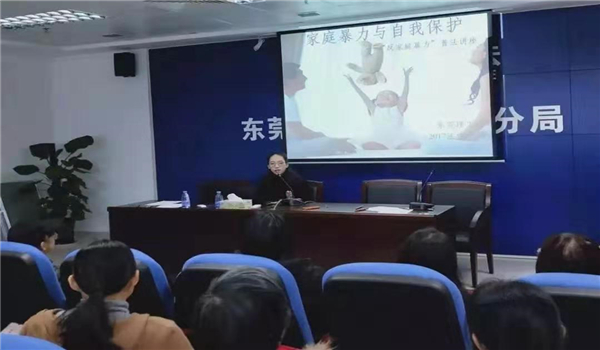 12月7日上午十点,迎着冬日里久违的暖阳,2017级法学卓越班的邓心乐同学代表东莞理工伟德国际victor1946来到东莞司法局东城分局进行“家庭暴力与自我保护”普法宣传活动。
