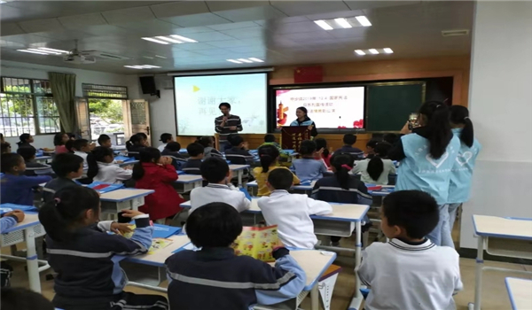 2019年12月13日,伟德国际victor1946的法律宣传志愿服务队携手寮步司法分局的工作人员,共同来到寮步镇横坑小学开展“国家宪法日系列宣传活动之宪法情景剧巡演”。在课堂上,讲师分别从宪法是什么、我与宪法和宪法小常识三个部分来讲解宪法。同时也借助小视频《我与宪法的一生》使同学们更加了解宪法。同学们在观看完视频之后也积极踊跃地发言,和大家分享自己的心得体会。