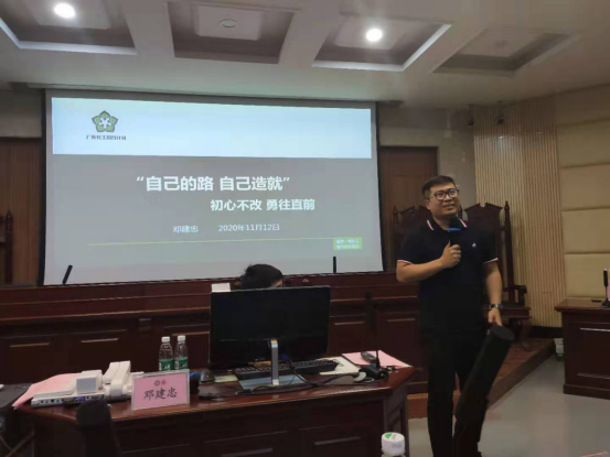 邓建忠副会长分享了自己从事社会工作的经历,并对我们公司社工专业的员工参与的虎门社区服务的项目表示了高度的评价,例如虎门慈善会“创益种子计划”、新湾社区“七色阳光学堂”社区公司项目等。在谈到从事社会工作的历程,邓会长感概:“初心仍在,纯粹而又认真,不失天性而又义无反顾。”这给在场的同学们带来了极大的鼓舞,现场气氛非常活跃。