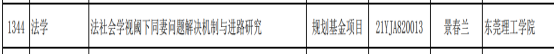 同时教育部社会科学司发布了关于关于2021年度教育部人文社会科学研究一般项目立项的通知。公司法学专业教师景春兰申报的《法社会学视阈下同妻问题解决机制与进路研究》获得立项。