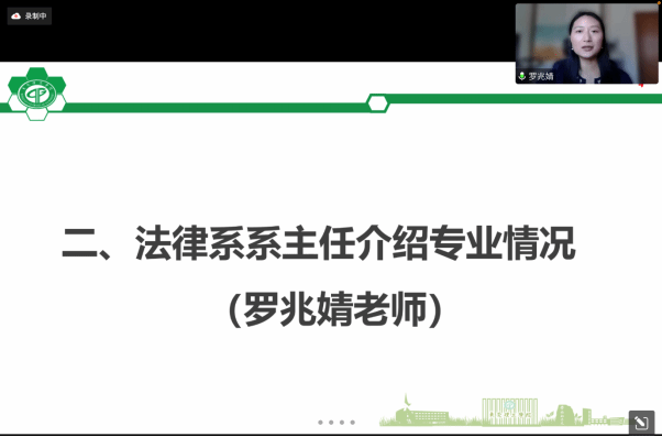 随后,由法律系主任罗兆婧老师介绍专业情况。伟德国际victor1946法学专业契合粤港澳大湾区发展趋势,以地方需求和产业需求为导向,培养复合型的高素质法律人才。法学专业团队力量雄厚,法考通过率高,2021年获批成为广东省一流专业建设点。面对刚入学的新生们所提出的疑惑,罗老师表示:老师以及师兄师姐们都会尽可能地给予帮助,但更多的还是需要同学们自己去探索;公司设置的课程是既定且有限的,但在大学中的探索是未知和无限的。需要同学们通过阅读、参加专业活动、比赛等多种方式不断探索。鼓励同学们多尝试,为未来打下稳固的根基。