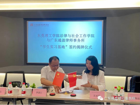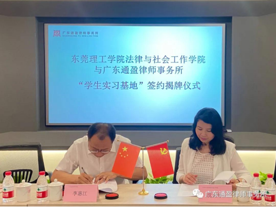 4月6日早上,公司与广东通盈律师事务所“教学实习基地”签约揭牌仪式,在广东通盈律师事务(以下简称“通盈所”)所隆重举行。