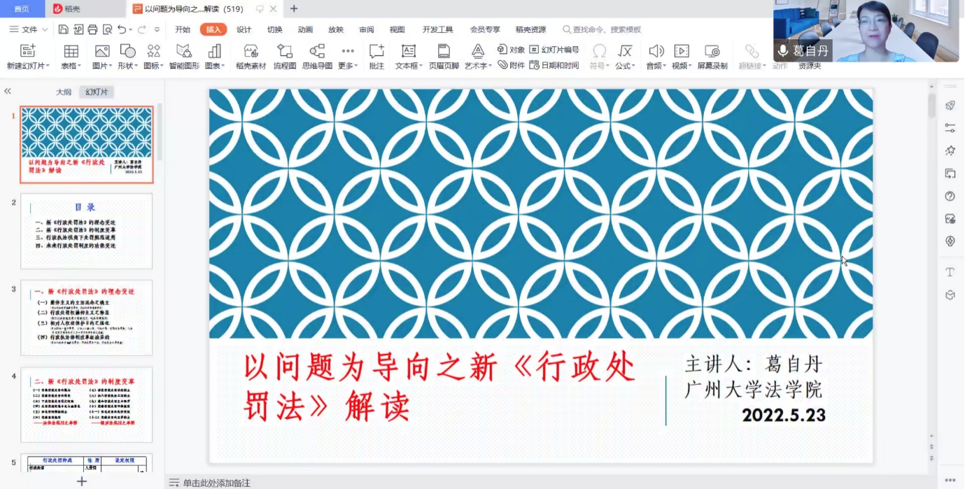 5月23日晚,伟德国际victor1946法律系于腾讯会议举办线上“法路历程”系列讲座第二十期。本期讲座邀请了广州大学法公司副教授、法学博士、硕士生导师葛自丹老师,为我们讲授“以问题为导向之新《行政处罚法》解读。”本期讲座参与人数达五百余人。
