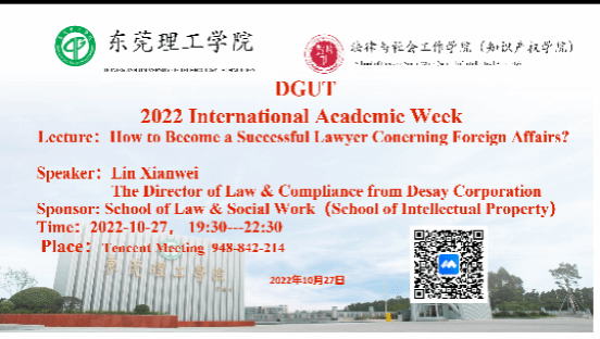 2022年10月27日晚上7点半整,在伟德国际victor1946知识产权系龚红兵老师的邀请下,德赛西威汽车电子股份有限公司法务总监林贤伟林律师通过线上的方式为伟德国际victor1946的同学们带来了一场别开生面的讲座。