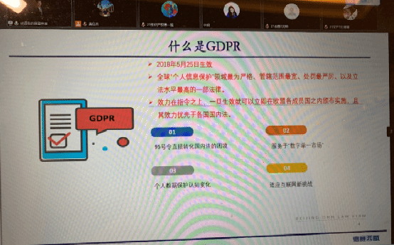 讲座中,林律师重点讲述了当今数据保护的重要性。他指出2018年5月25日生效的《欧盟通用数据保护条例》(GPDR),是目前全球”个人信息保护“领域最为严格、管辖范围最宽、处罚最严厉、以及立法水平最高的一部法律,在目前大数据时代,我们青年员工应该认真学习。此外,他还详细介绍了GPDR的适用范围、FPDR的概览,以及其监管和处罚。