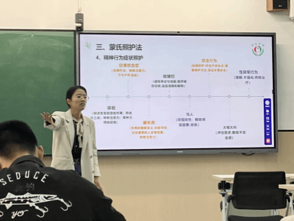 刘畅社工通过体验互动“经理畅想曲”,引导同学们使用工具思维导图,畅想自己是经理,以老年人需求为导向,构思如何分配100张床位?并邀请同学分享。从而引出护理院建设的基本标准,包括床位数量、科室设置、人员配备等内容。接着,她分别从技术、资金、服务、供应支撑四个方面,详细分析以医养一张床为核心,拓展多元医养的服务模式。做到全人、全家、全程、全团队、全社区的五位一体服务模式,以全人全程的闭环管理,制定个性化护理计划。